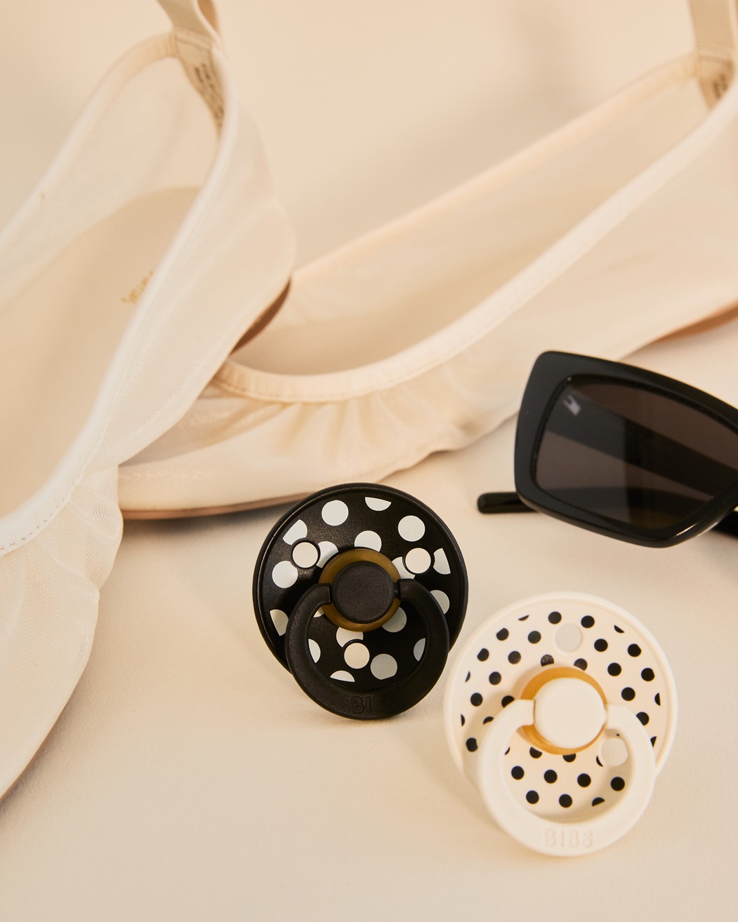 Пустушка BIBS Studio Colour 2 PACK Polka Latex Anatomical (анатомічна) – Ivory / Black